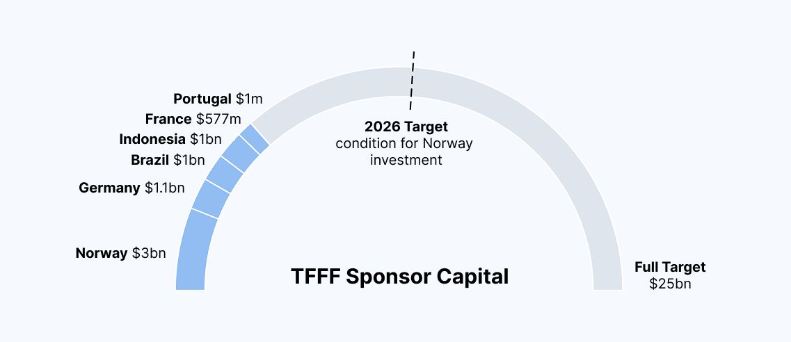 Nevertheless, the TFFF is still far from fully funded. A condition of Norway’s investment is that other countries pledge $10 billion in investments before the end of 2026. The TFFF has 13 months to come up with the missing $6.3 billion. Additional investments may come from the UK, UAE, China or the EU. Unexpectedly, three multilateral development banks, the EIB, AIIB and EBRD, are also weighing investments.